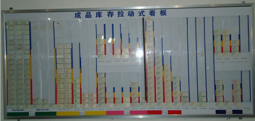 成品超級市場,包裝完成後成品入成品倉,上超級市場看板,客戶拉動資訊直接回饋到看板上,與毛胚超級市場對接,建立JIT生產(chǎn)模式,實現(xiàn)準時化生產(chǎn)作業(yè)。 |